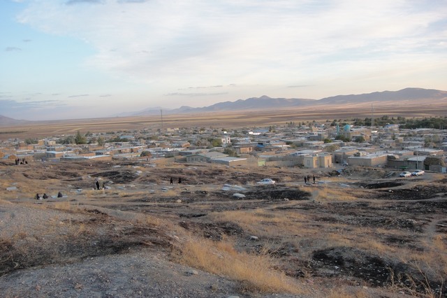 (نمای نیمه دیگر روستا وقسمتی از گورستان در دامنه تپه باستانی)
