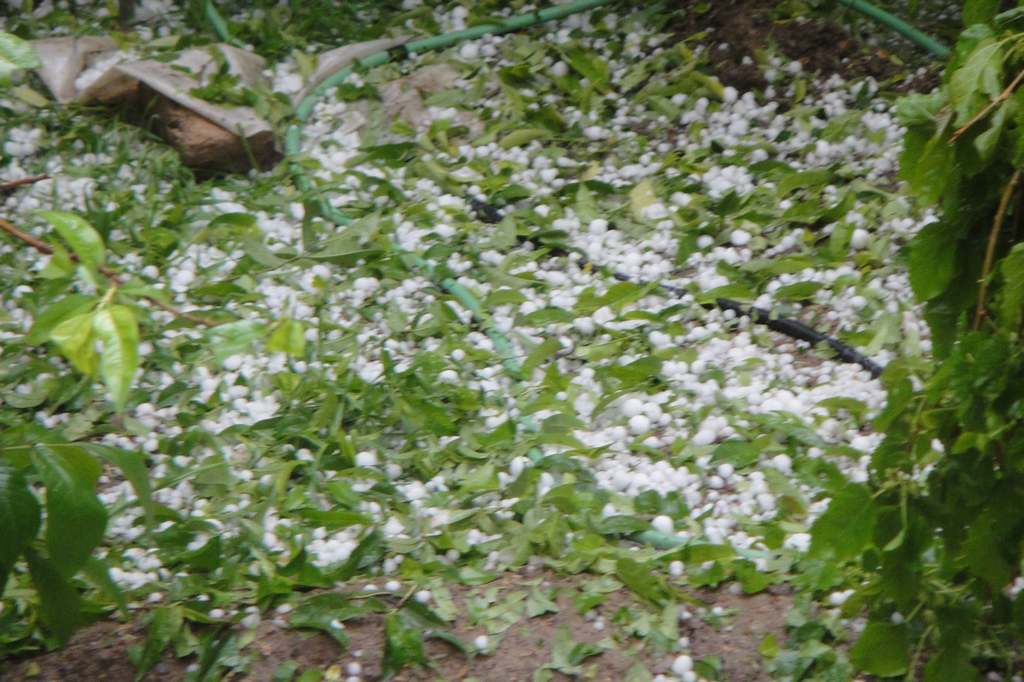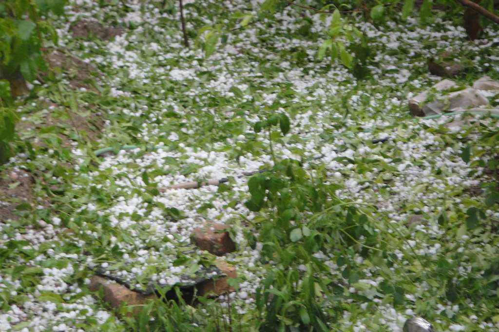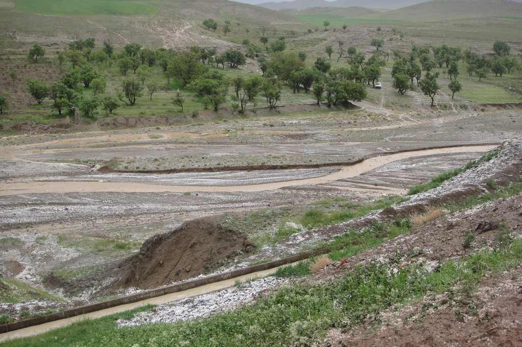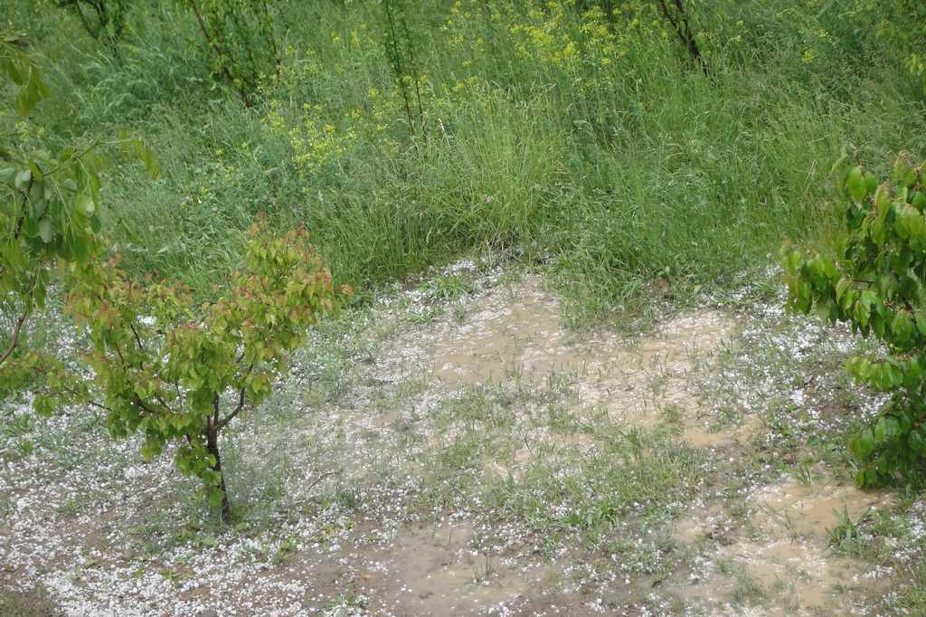 تصاويري از اثرات تگرگ در روستاي كرفس در باغها
